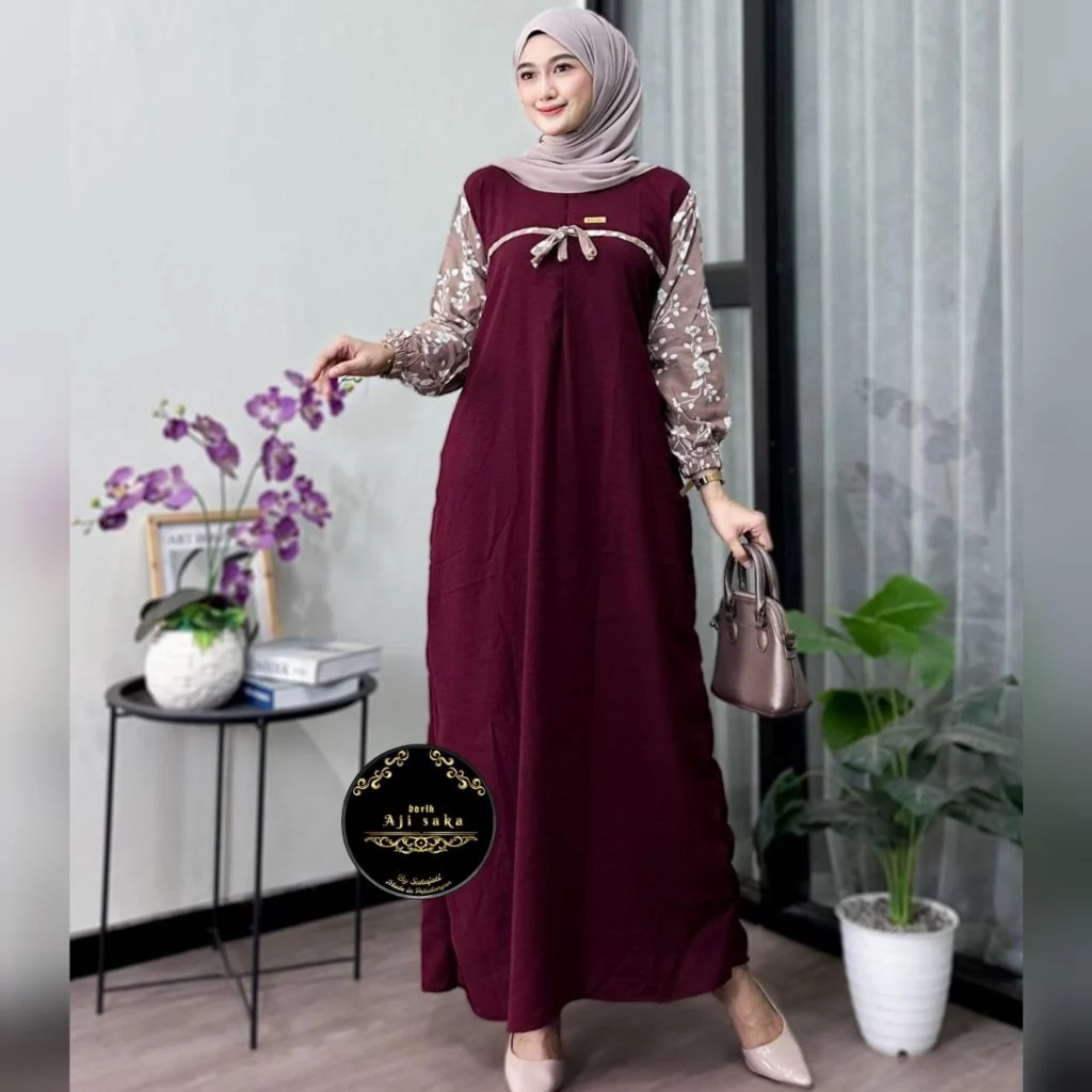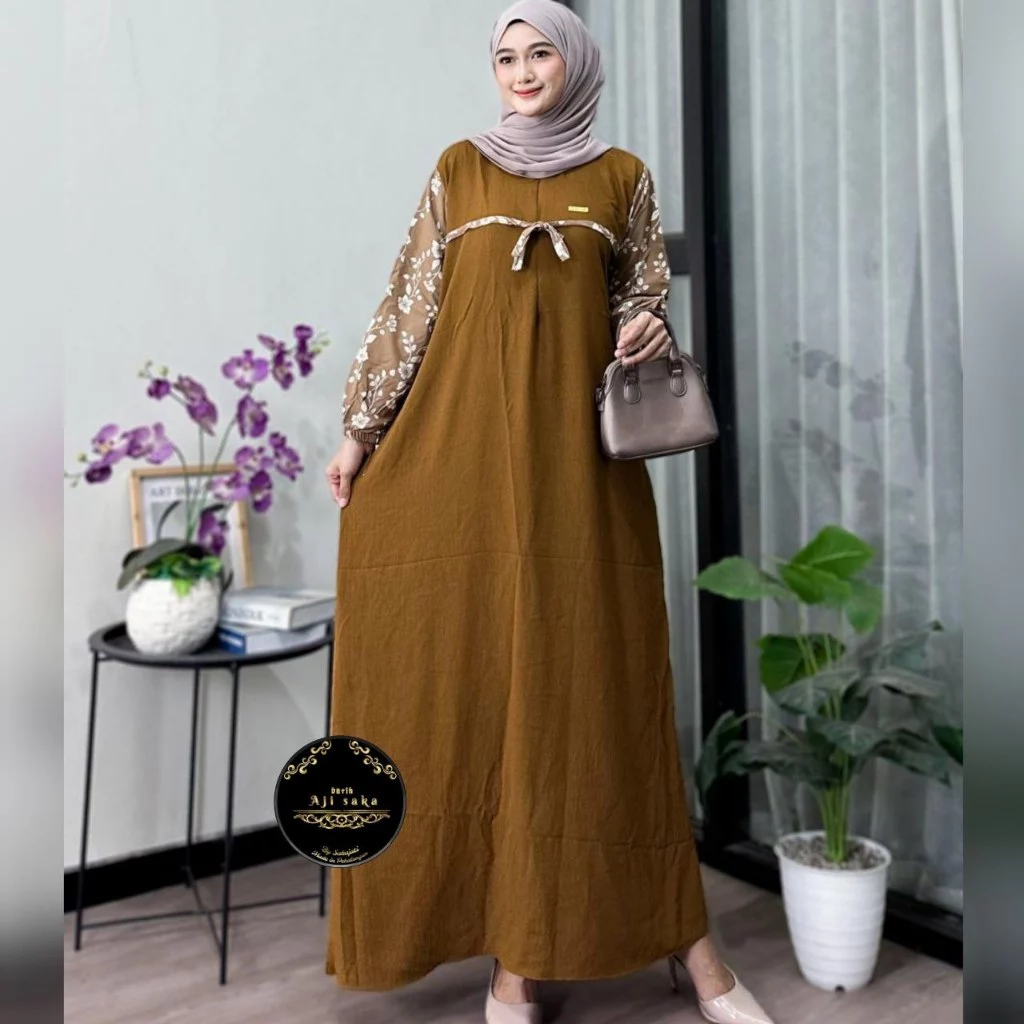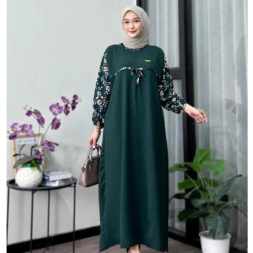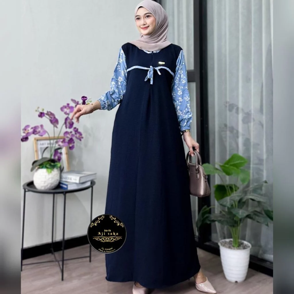 Dilengkapi resleting depan yang praktis, memberikan kemudahan ekstra bagi ibu menyusui tanpa mengorbankan keanggunan penampilan.
